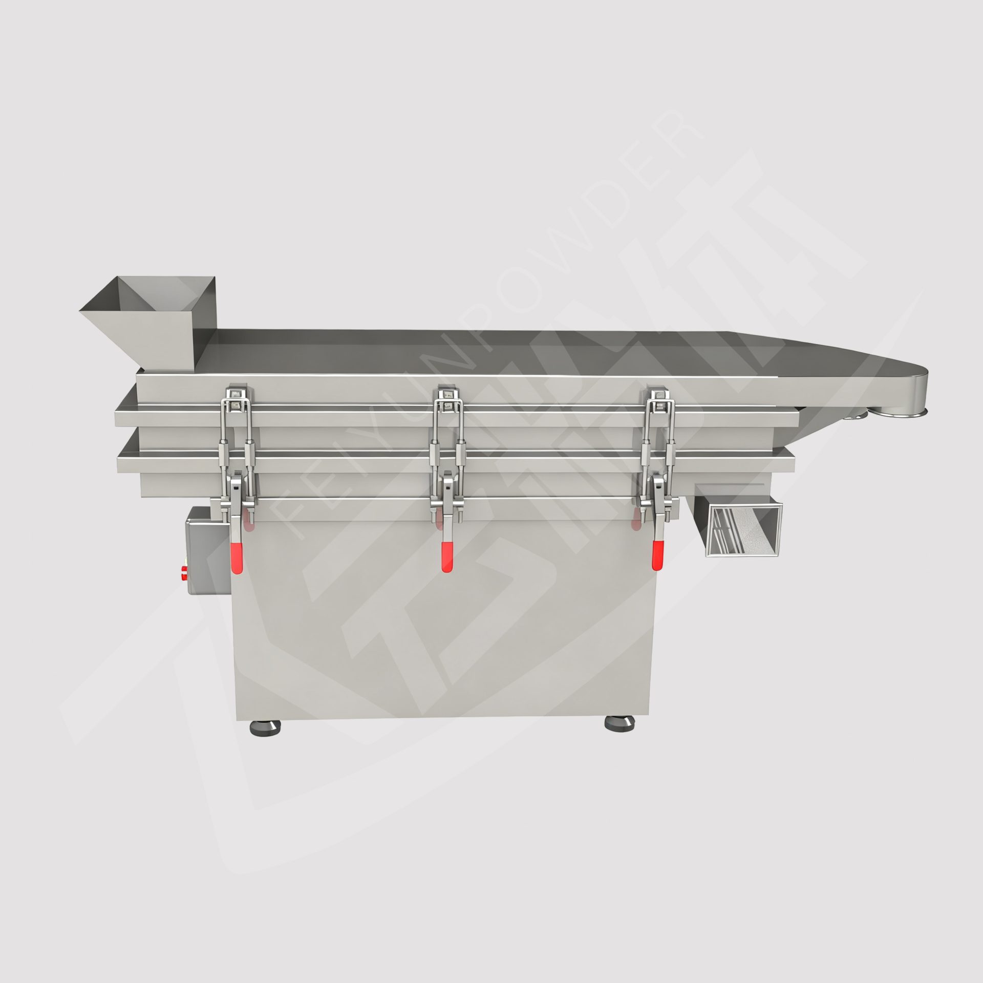 多层直线振动筛是利用振动电机激振的原理,使物料在筛面上被抛起,同时向前作直线运动,加以合理匹配的筛网从而达到筛分的目的。本机由机座、振动室、振动电机、减振器等组成,该机振动平稳、噪音极低、操作简单、筛分性能优秀,符合 “GMP” 要求被广泛应用于医药、食品、化工等行业丸剂、颗粒料的筛分。